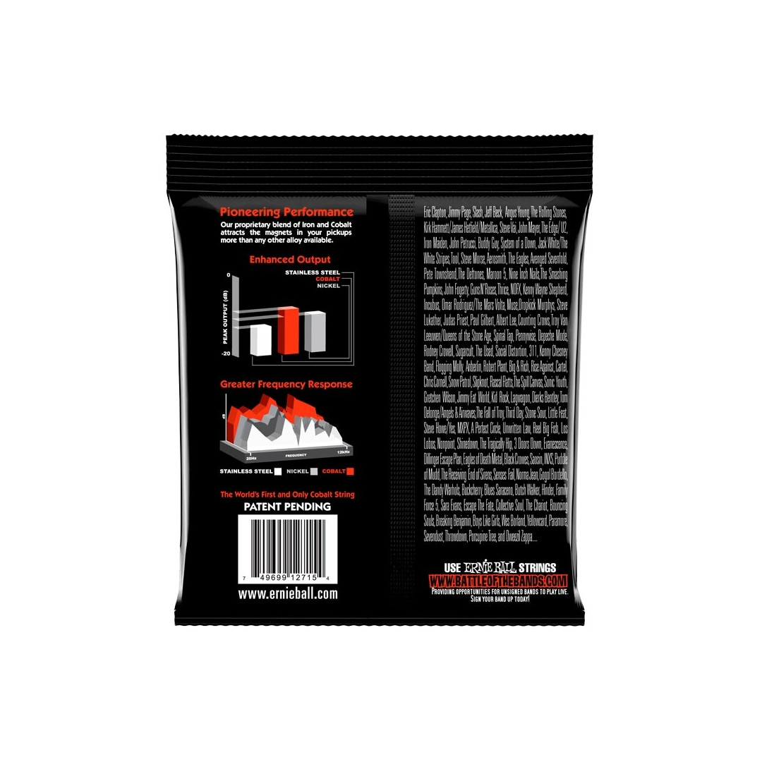 Σχεδιασμένες με σκοπό τη μεγιστοποίηση του output και της ευκρίνειας, οι Ernie Ball Cobalt Slinky είναι η τελευταία καινοτομία στην τεχνολογία χορδών. Επιδιώκοντας να παρέχουν στους κιθαρίστες και τους μπασίστες ένα νέο τόνο, οι χορδές κοβαλτίου προσφέρουν ένα εκτεταμένο δυναμικό εύρος, απίστευτη απόκριση αρμονικών, αυξημένο bottom end και ευκρινή, καθαρά πρίμα.Το κοβάλτιο παρέχει μια ισχυρότερη μαγνητική σχέση μεταξύ των μαγνητών και των χορδών σε σύγκριση με οποιοδήποτε άλλο κράμα έχει χρησιμοποιηθεί μέχρι σήμερα. Οι Cobalt Slinky είναι επίσης ιδιαίτερα μαλακές και μεταξένιες στην αφή, κάνοντας τα bending παιχνιδάκι! Επιπλέον, αντέχουν περισσότερο στον ιδρώτα και την υγρασία, που σημαίνει μεγαλύτερη διάρκεια ζωής, και έχουν απαράμιλλη ευελιξία σε σύγκριση με χορδές nickel-wound.”Οι Ernie Ball χορδές κοβαλτίου δίνουν τον καλύτερο ήχο και την καλύτερη αίσθηση από οτιδήποτε έχω παίξει ποτέ! Επιβάλλεται να τις δοκιμάσετε!” – Slash.” Οι Ernie Ball χορδές κοβαλτίου παρέχουν μια αίσθηση απίστευτα μεταξένια στα δάκτυλά μου και αποδίδουν περισσότερο punch, output και ευκρίνεια σε σχέση με τις κανονικές χορδές!” – John Petrucci.Διαμετρήματα: .010, .013, .017, .030, .042, .052