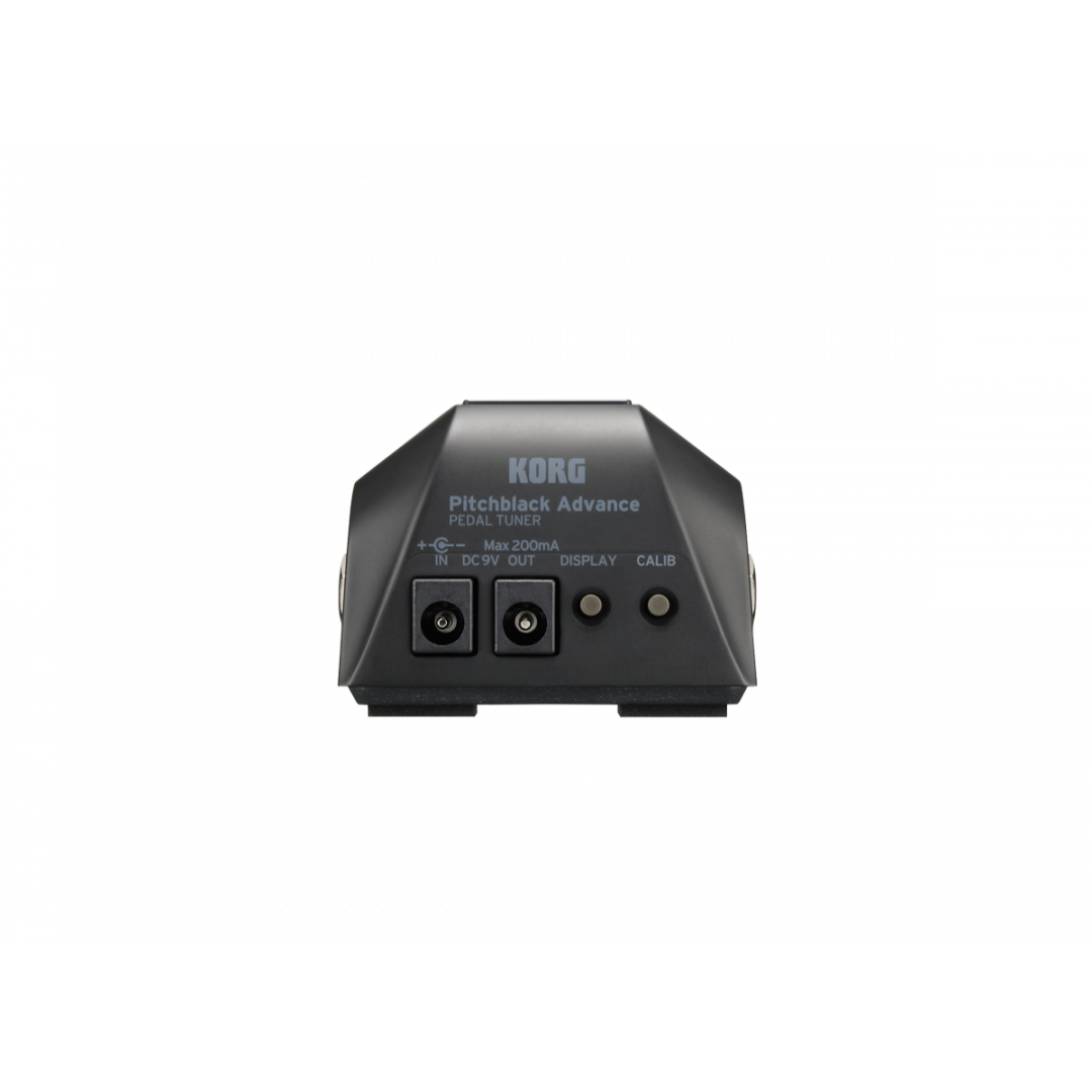 Korg Pitchblack Advance, κουρδιστήρι σε μορφή πεταλιού, χρωματική λειτουργίαs 12 notes, συχνοτικό εύρος E0 (20.60 Hz) – C8 (4186 Hz), ρύθμιση calibration 436 – 445Hz, ακρίβεια +/- 1 Cent, ένδειξη οθόνης regular, strobe, half-strobe & mirror, σύνδεση είσοδος-έξοδος με jack, λειτουργία true bypass, είσοδος και έξοδος DC 9V για λειτουργία με adaptor (optional), λειτουργία με μπαταρία 9V με μέγιστη διάρκεια στις 60 ώρες, βάρος 257 gr.