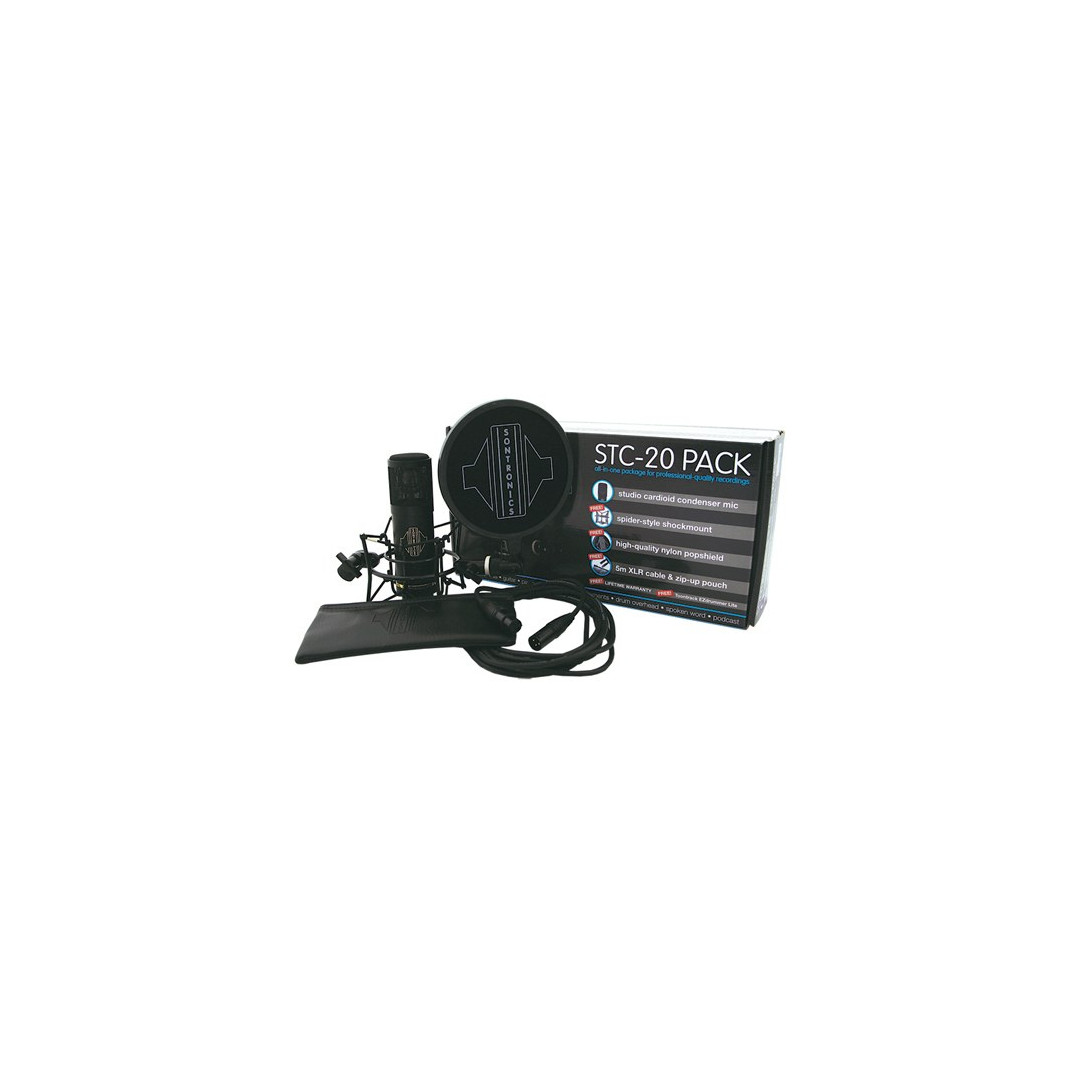Το πακέτο περιλαμβάνει το best-seller μικρόφωνο της Sontronics STC-20, μαζί με Shockmount τύπου αράχνης (με 2 ανταλλακτικά λαστιχάκια), Popshield που συνδέεται με to shockmount, Καλώδιο XLR 5 μέτρων, Θήκη προστασίας του μικροφώνου με φερμουάρ